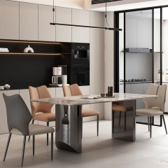 雪山石亮光岩板+15厘贴皮中纤板+五金碳钢脚