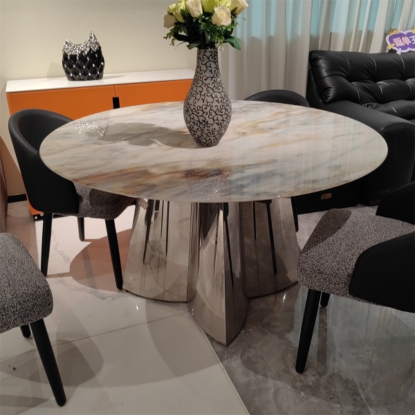 微晶石+粘合15厘托板+不锈钢灰钛桌架