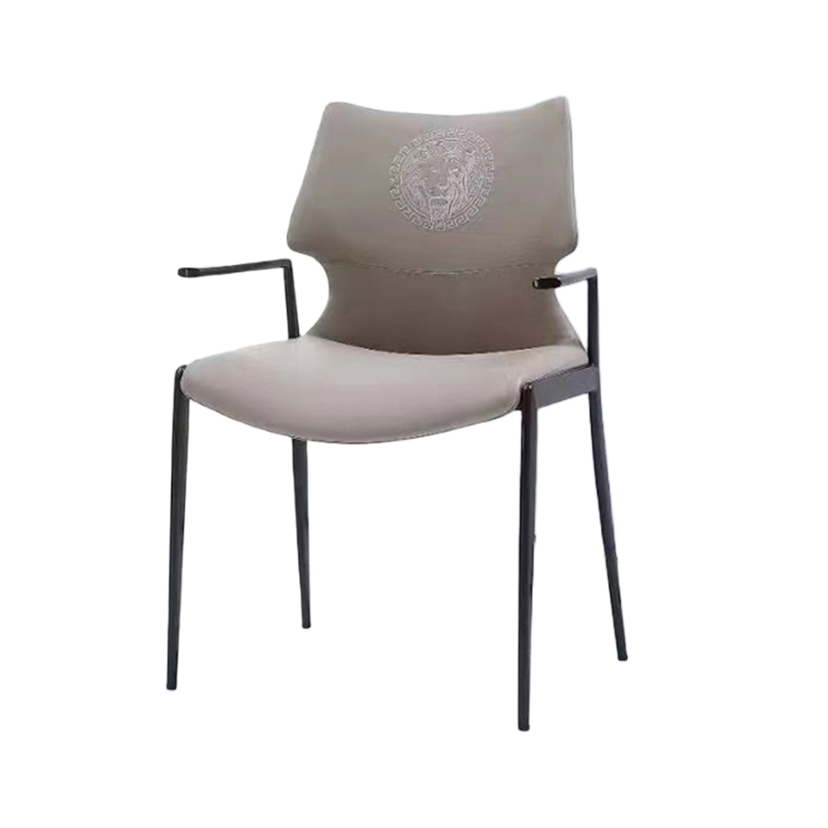 硅胶皮刺绣+高密度海绵+碳素钢亮光黑钛底架和扶手