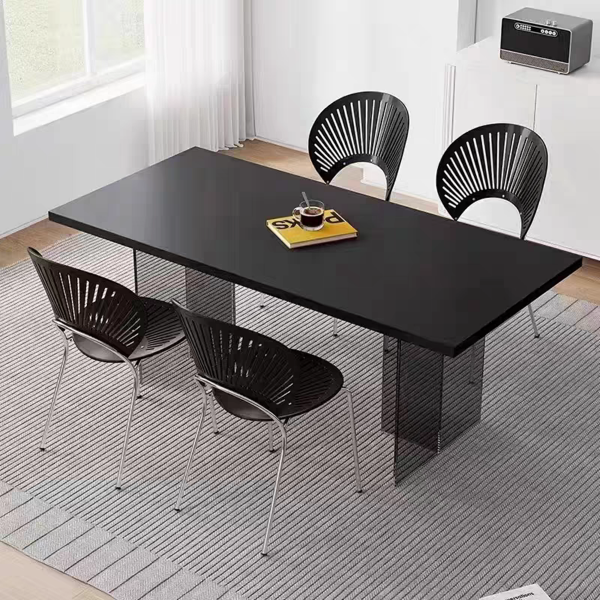 【pulsation脉动】纯黑岩板亚克力长餐桌