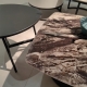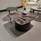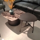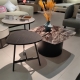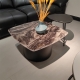 威尼斯棕微晶石台面+半托底板+灰钛碳素钢/环保板贴木皮台面边几