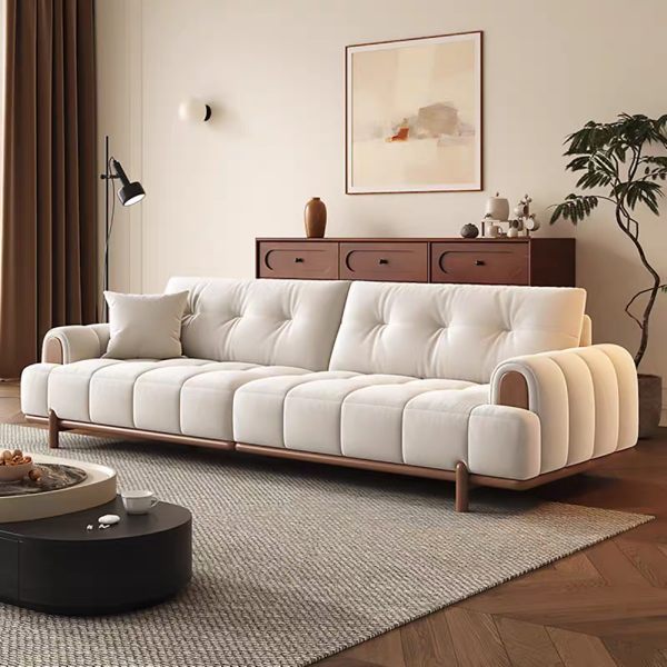 雪尼尔面料+扶手实木装饰+高密度东亚海绵+实木框架+实木底架和脚