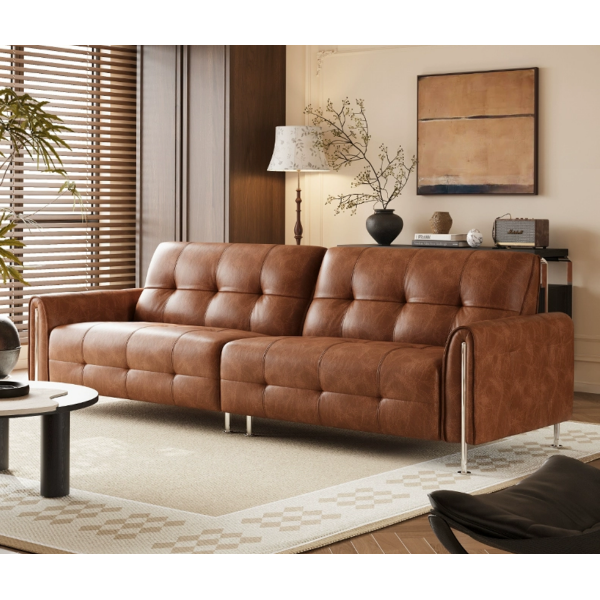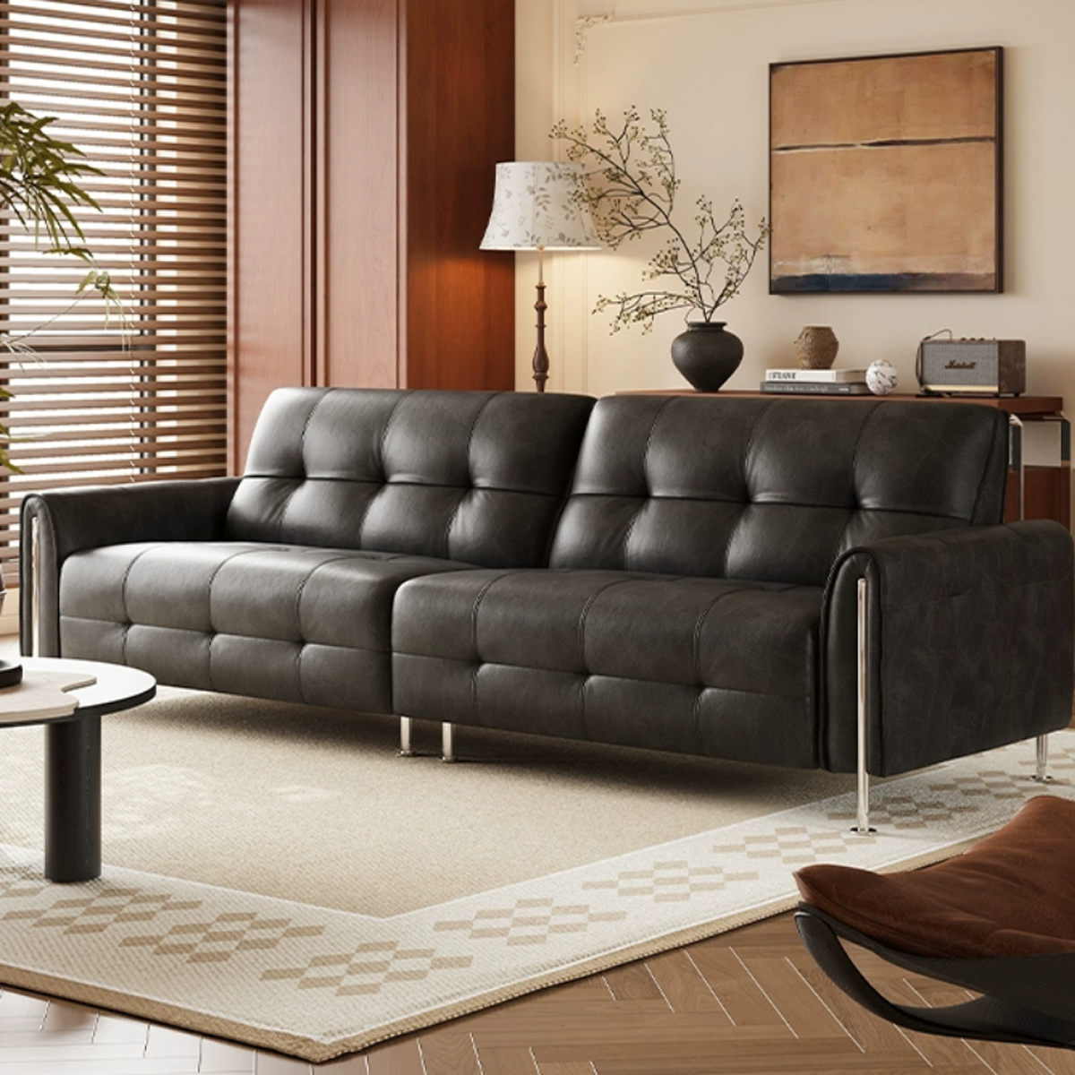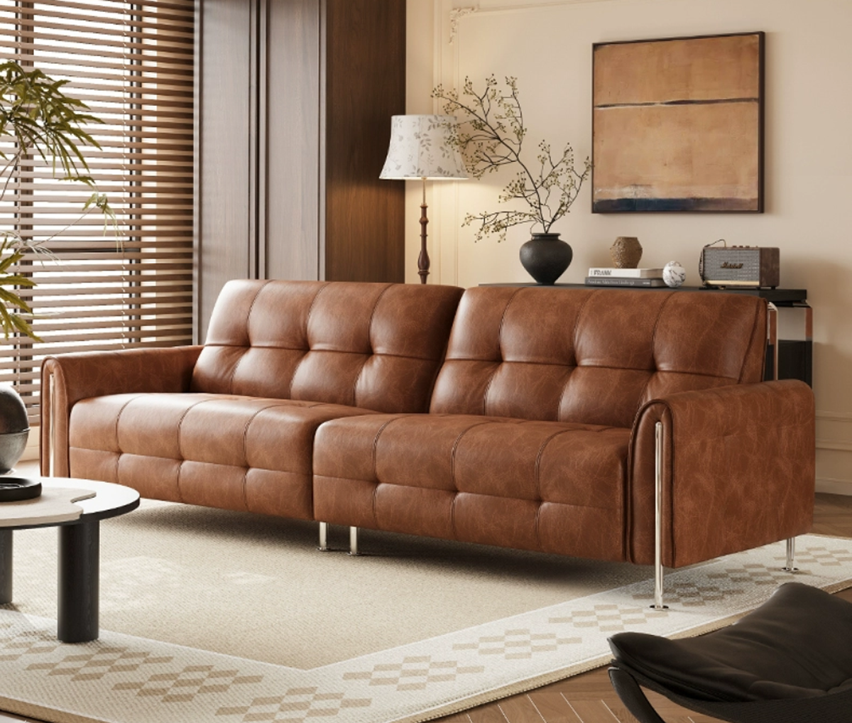 油蜡皮+赛羽绒靠包+坐垫高密度东亚海绵+实木框架+11公分不锈钢脚