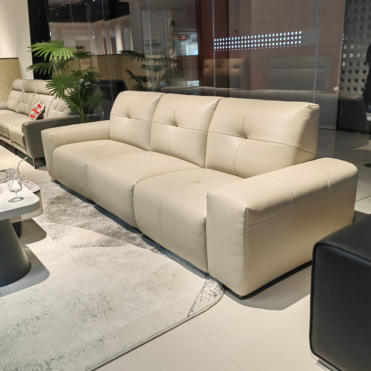 2.0厚生态真皮接触面+全实木框架+高密度海绵+钢塑脚