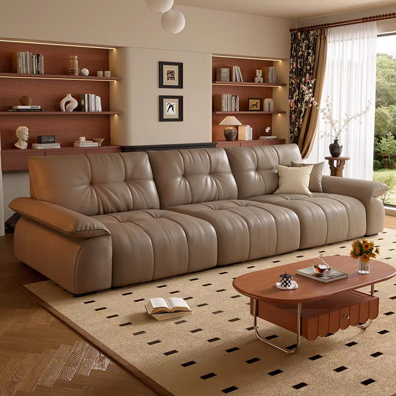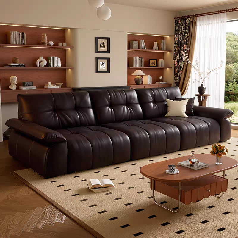 2.0厚生态真皮接触面+全实木框架+高密度海绵+钢塑脚