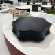 大几:高密度板贴木皮柜身+单抽,边几:不锈钢底架+实木夹板胡桃木皮+铜条台面