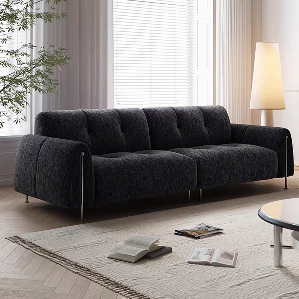 雪尼尔面料+高密度东亚海绵+实木框架+一体五金脚