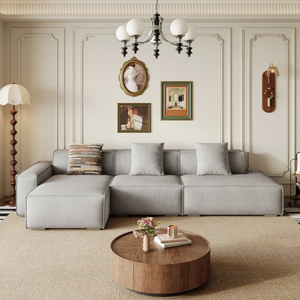 平纹雪尼尔面料+实木内框+高密度海绵+实木脚