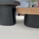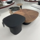 纤维板贴胡桃木皮拼花台面+胡桃木皮底架+黑色木边几