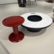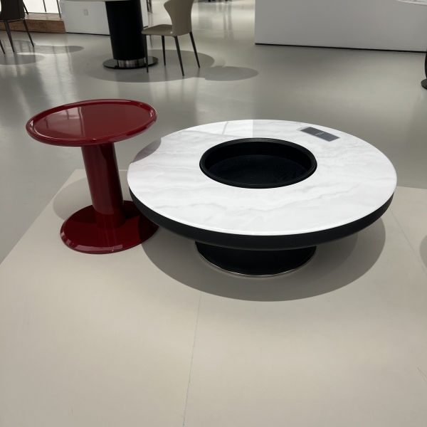 爵士白微晶石台面+黑色木皮柜身+实木抽屉 /高亮光红色烤漆边几