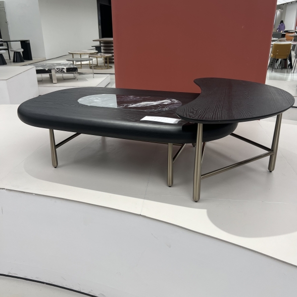 微晶石+E1级环保板材贴木皮+黄古铜不锈钢底架