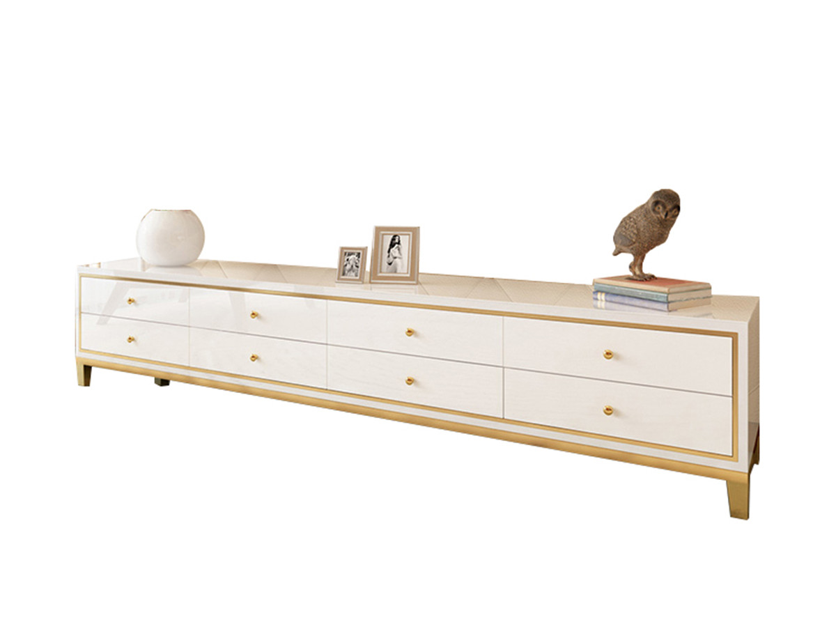 不锈钢镀金+环保生态板钢琴烤漆+钢化玻璃台面