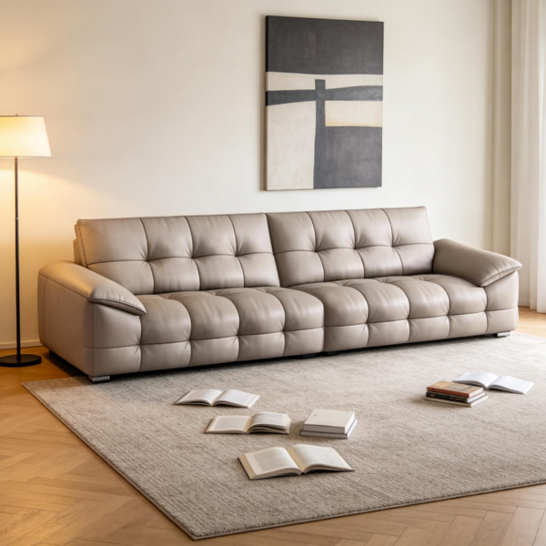 接触面头层真皮+高回弹海绵+实木内框+塑钢脚